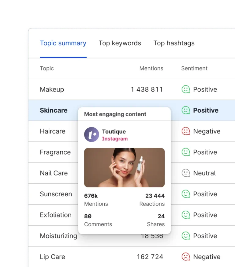 Gain a complete picture of your social listening data, including AI-driven sentiment recognition, to better understand audiences, monitor your competition, and make smarter business decisions.