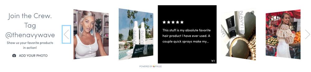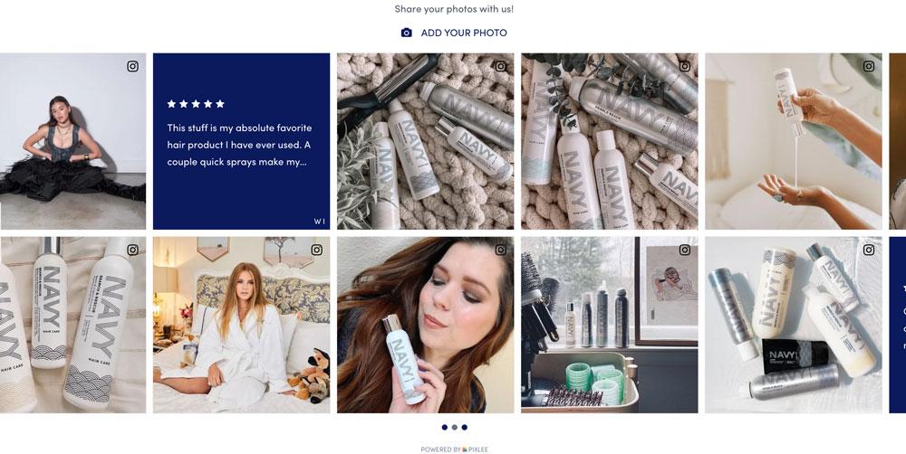 Word-of-mouth marketing is streamlined in easy-to-consume formats for NAVY Hair Care customers. Emplifi’s UGC text-based capabilities give a holistic voice to passionate fans and showcase community focus to new shoppers.