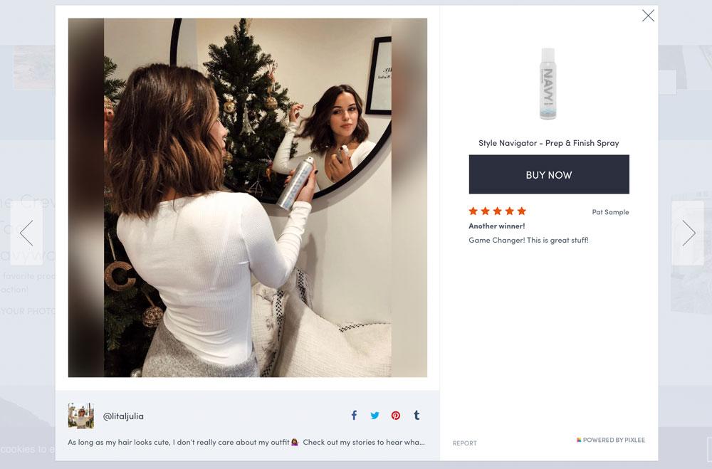 NAVY Hair Care utilizes Emplifi as a way to start a dialogue with customers about what specific products and practices are of value to them. Visual UGC gives the brand a way to practice social listening while engaging online shoppers, and drove a 264% increase in repeat-visit rate.